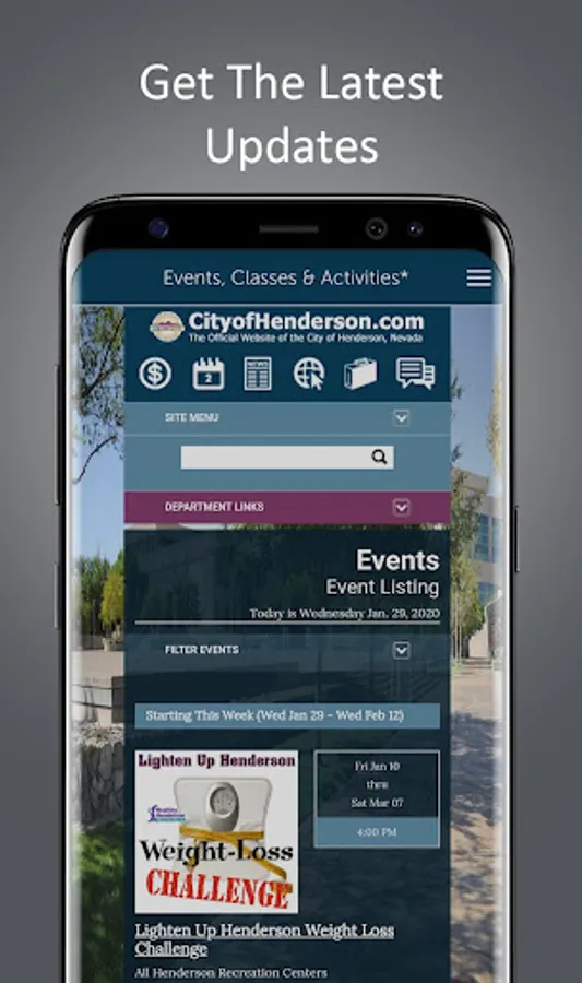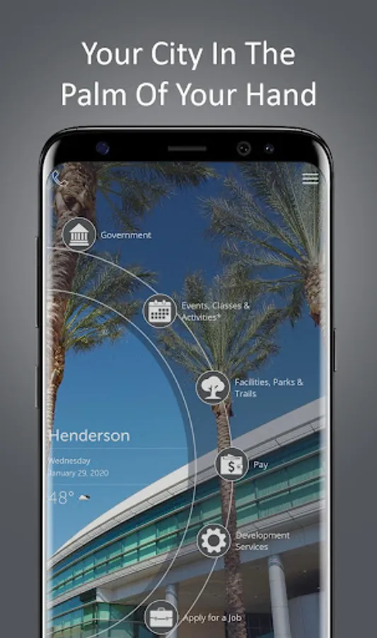 Become a civic citizen and engage with your city like never before by downloading the official app for the City of Henderson, NV. With features like Government, City Directory, Events, Classes & Activities, Facilities, Parks & Trails, Apply for a Job, and Report an Issue you'll find it easier than ever to stay connected with the City of Henderson, NV with just a few taps on your mobile device.