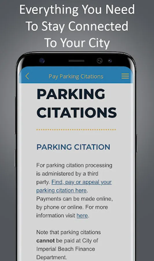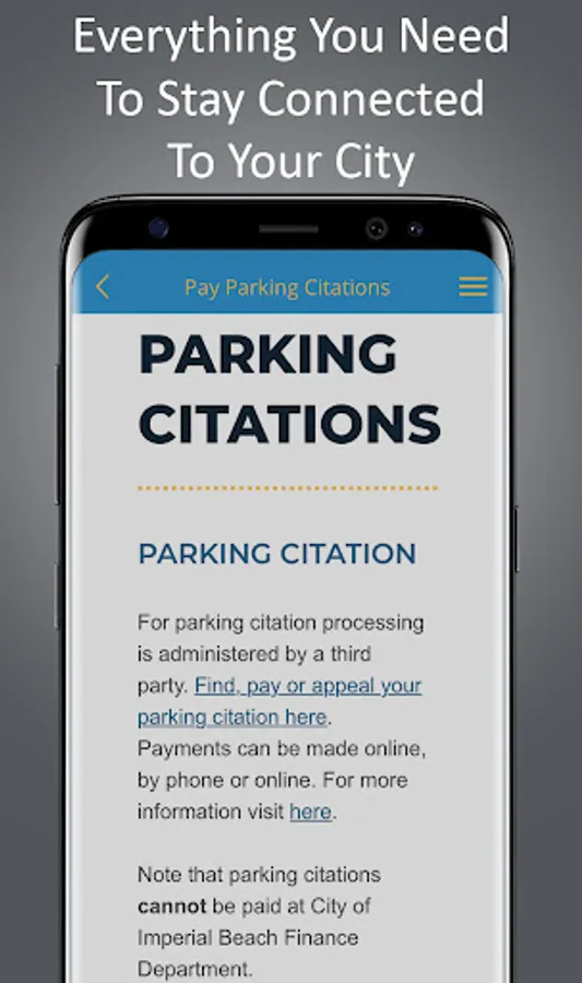 Become a civic resident and engage with your city like never before by downloading the official app. With features like Current News, Parks and Facilities, Pay Parking Citations, and Office of Mayor and City Council you'll find it easier than ever to stay connected with City of Imperial Beach, CA with just a few taps on your mobile device.