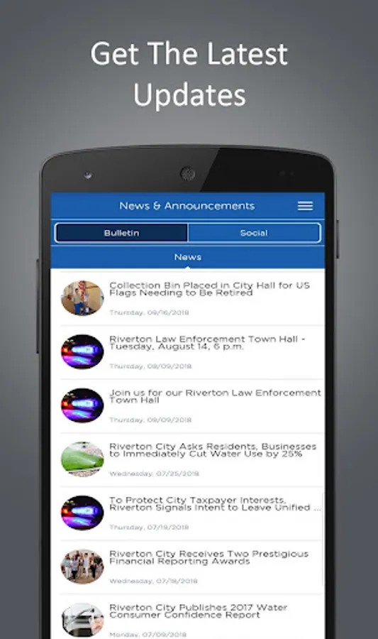 The Riverton Connect app is designed to empower citizens to connect with Riverton City, Utah, like never before! The app provides essential information and tools at the touch of a finger, including the ability to report problems within the city. Additional app features include: calendar feed, community info, contact directories, government info, news feed, parks and facilities maps and directions, and more.