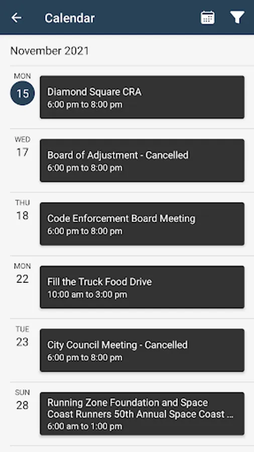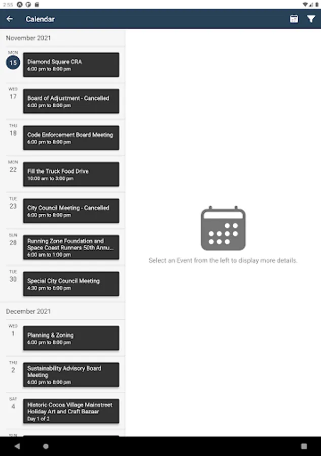 • Calendar-See what’s going on in the city and sign up for event notifications and changes.