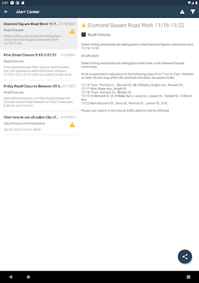 • Emergency Alerts-Receive notifications about important community news, street closures, road conditions and critical emergencies. Also get up-to-the-minute emergency updates.