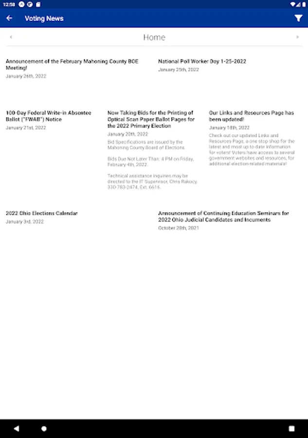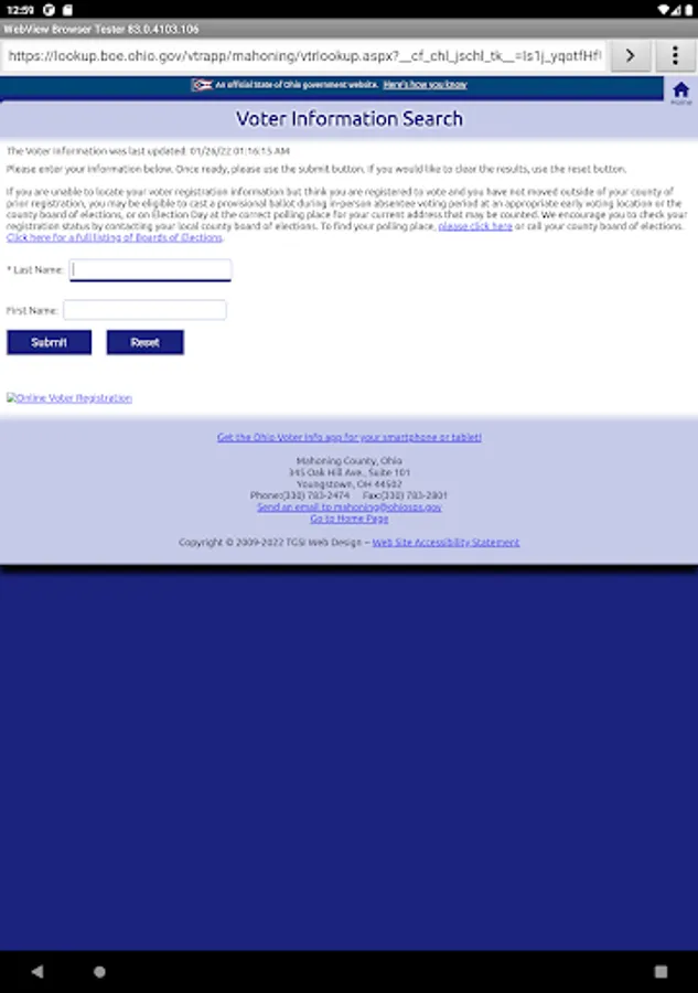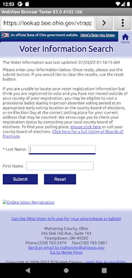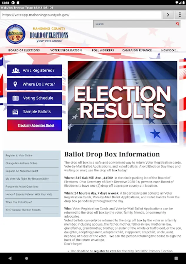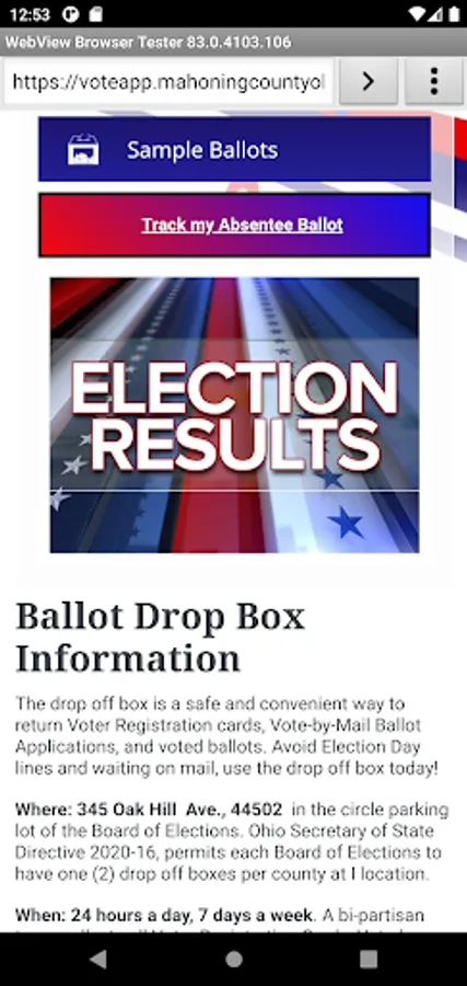 Mahoning County Votes is the official mobile app for the Mahoning County Ohio Board of Elections. The app provides a connection between the Board of Elections and County Voters. Enjoy convenient access to Voter Registration information and services, Absentee Voter information and services and all other important information and services the County Board of Elections has to offer. Whether you are a registered voter or just someone who wants to learn more about the County Board of Elections, this app delivers what you need to know.