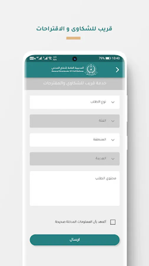 Madani is the official mobile application for General Directorate of Civil Defense which allows citizens and foreigners to: