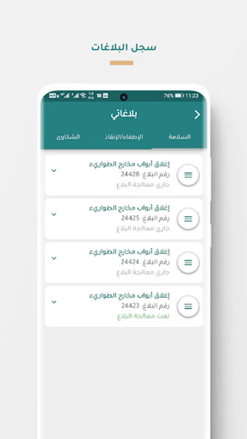 - Make a report about Fire or Rescue accidents by fetching current user location or add another location from the already saved user's list.