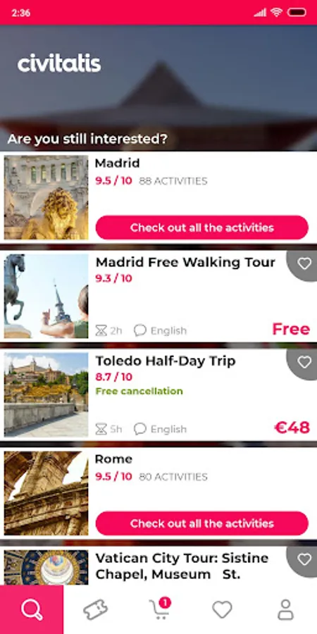 Make the most of your trips with the free Civitatis app that allows you to find and book hundreds of English-speaking activities, guided tours and excursions around the world.