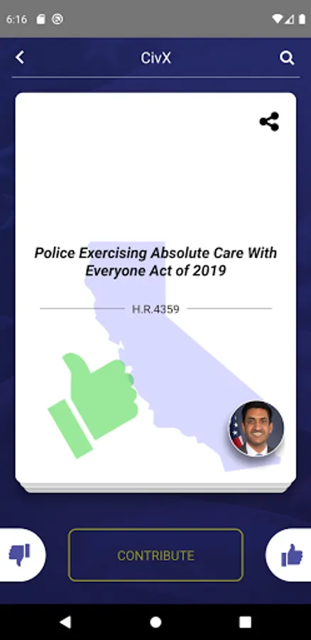 Introducing CivX, an easy-to-use mobile app that offers an intuitive, interactive and fun way to discover legislation in Congress, become an informed citizen and make your voice heard.