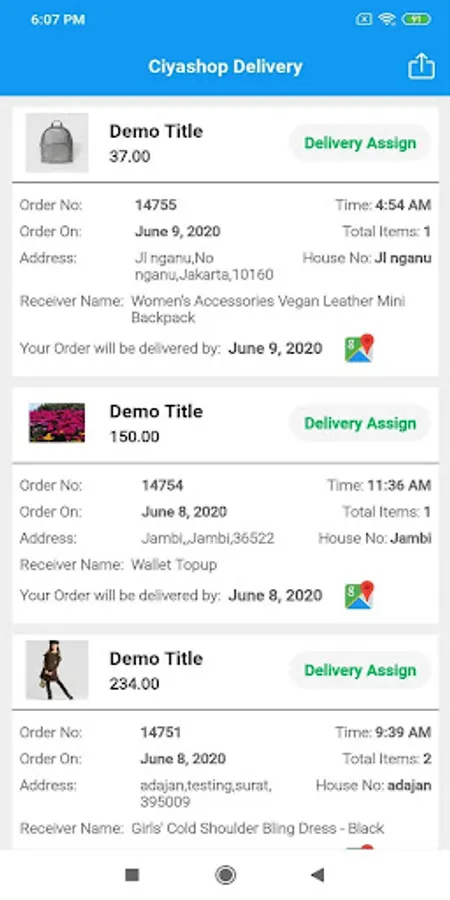 This app will allow assigning delivery to delivery partners.