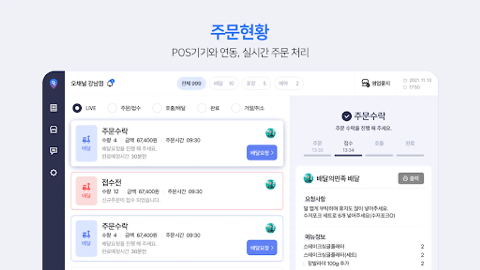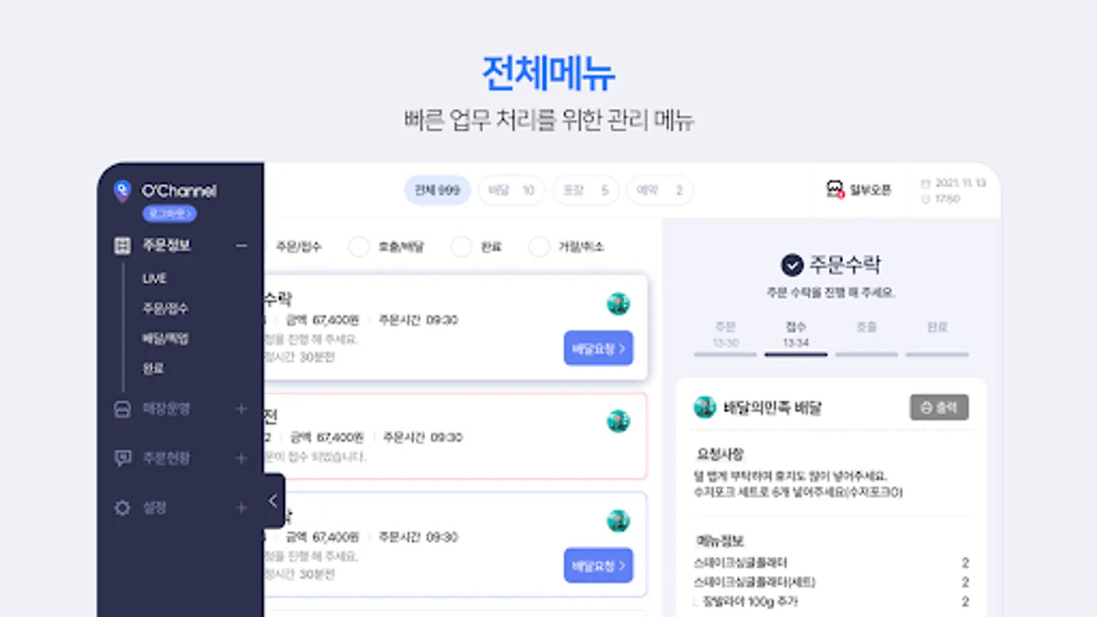 Various ordering channels such as Baedal Minjok, Yogiyo, and Coupang Eats are all possible with one OChannel app!