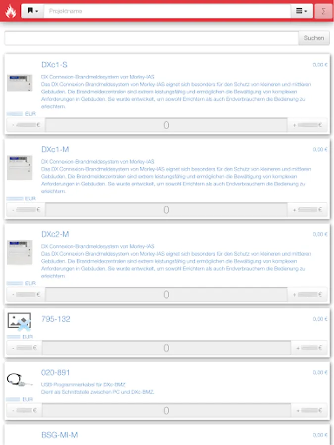 Using the app, the user who is in possession of the appropriate access codes - applying it pt 3 ANB, a technical connection to the Calculation software produced for Morley IAS products, which allows the user to retrieve the latest products and prices of the product catalog.. The user can Morley-IAS products and prices as desired and needed compile, process them in a list and send it to an email address. In addition, the user of the calculated product list, add granted by Honeywell discounts that are taken into account in the calculation. The list may, at its own risk of the user, can be used as an offer list for third parties.