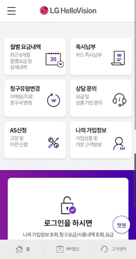 LG HelloVision Customer Center is a [Customer Center] application for Android phone users that can easily meet LG HelloVision anytime, anywhere.