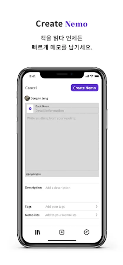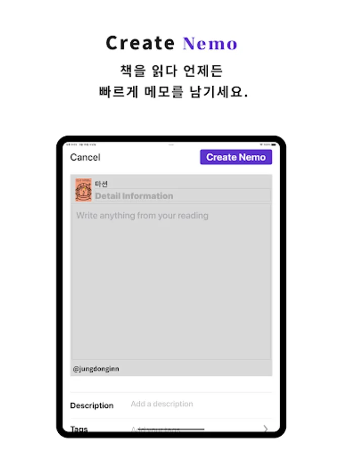 *Create Nemo : Leave a quick note at any time while reading a book. Notes are stored in the user's app.