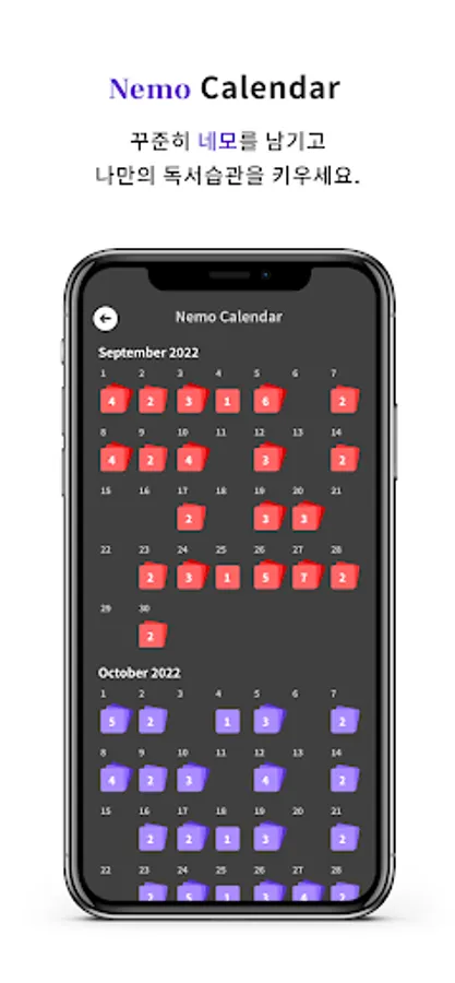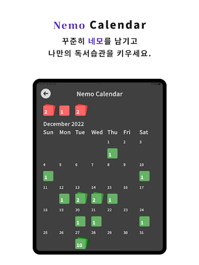 *Nemo Calendar: Keep a square and develop your own reading habit. The number of squares left by date is automatically displayed.
