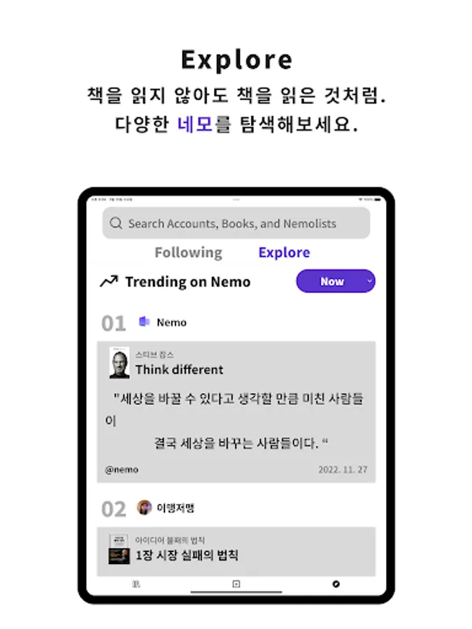 *Explore : Even if you don't read a book, it's like reading a book. Explore the various squares. Follow other users and get insights.