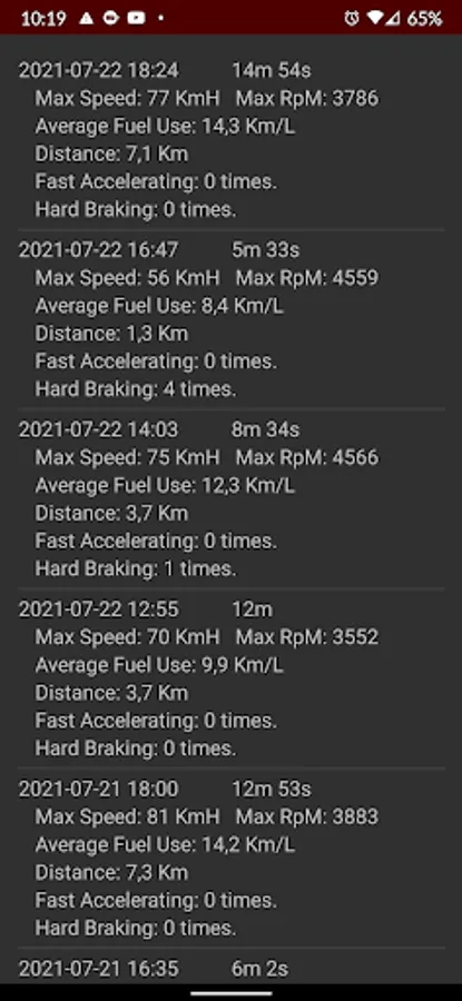 See your speed, instant fuel consumption, rpm, distance and more while taking a trip! Your trip data will be stored so you can see it later.