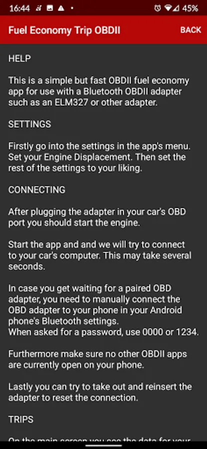 Fuel Economy Trip OBDII requires an OBDII Bluetooth adapter (ELM327 based) to communicate with your car's computer.