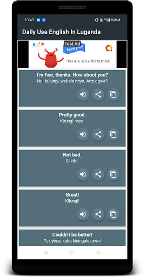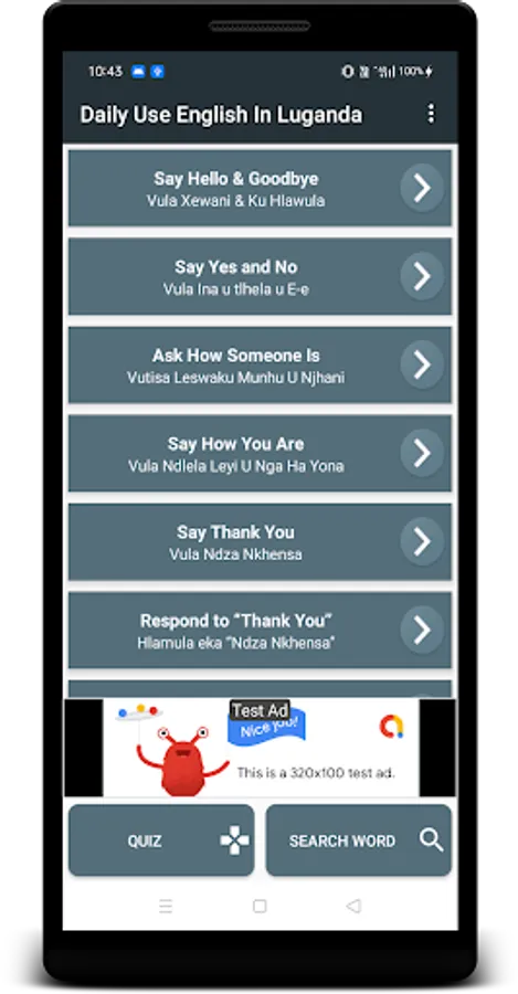 More than 5000+ English sentences and 100+ category with Luganda meaning.
