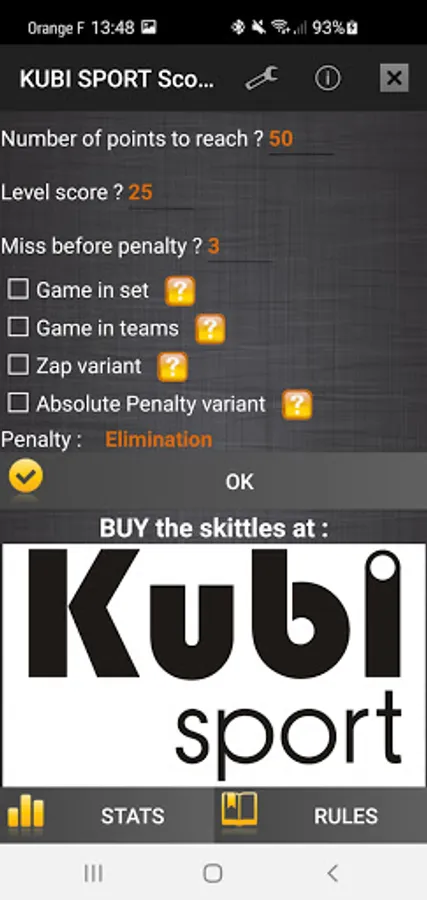 With Kubi Sport Scorer you can play every man for himself or in teams (10 teams of 4 players max). All you have to do is to choose the number of points scored by a player and that's it! The application shows you the number of points of all players (or teams), their rankings,