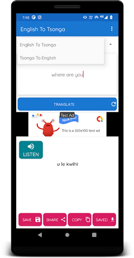 Here You can translate text, words & phrases to English To Tsonga and Vice-versa translation.