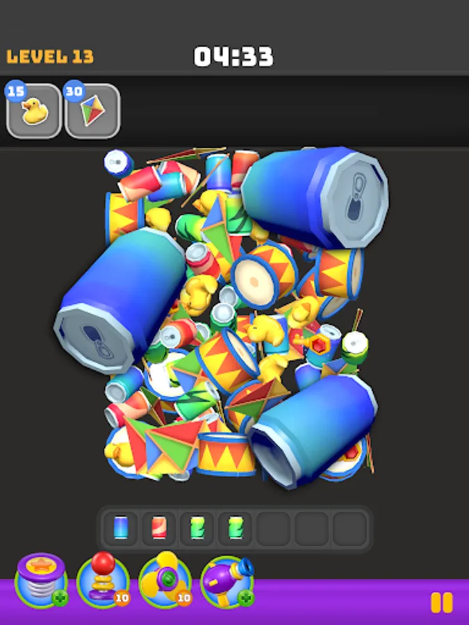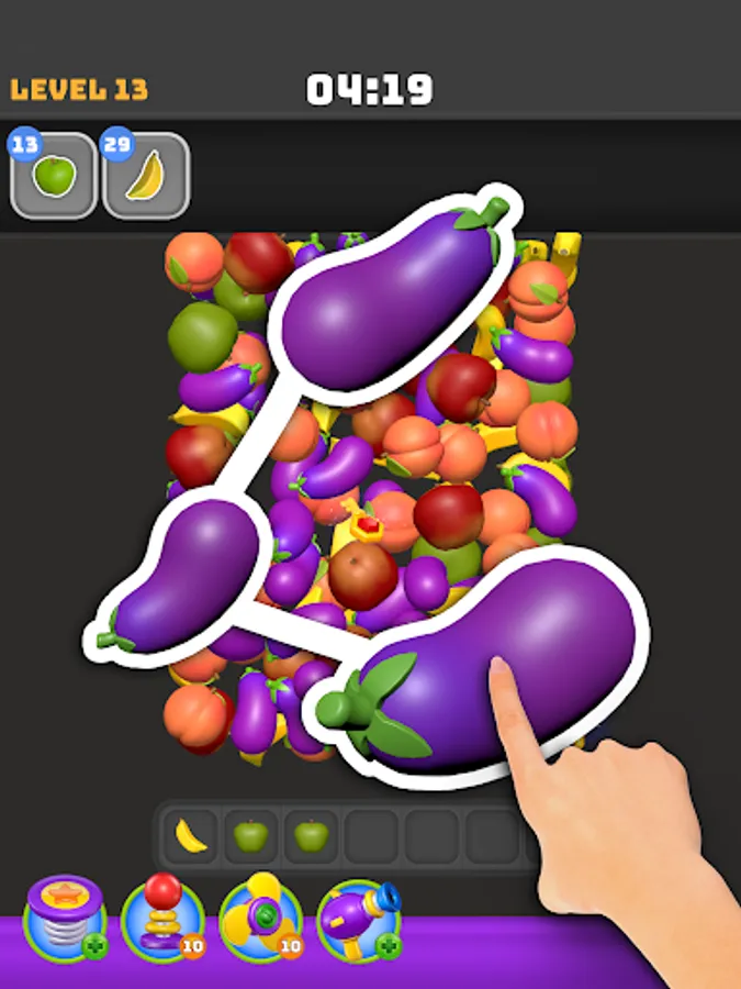 Use power-ups to help you sort through the objects and pass tricky levels.