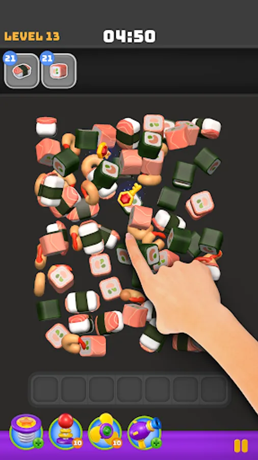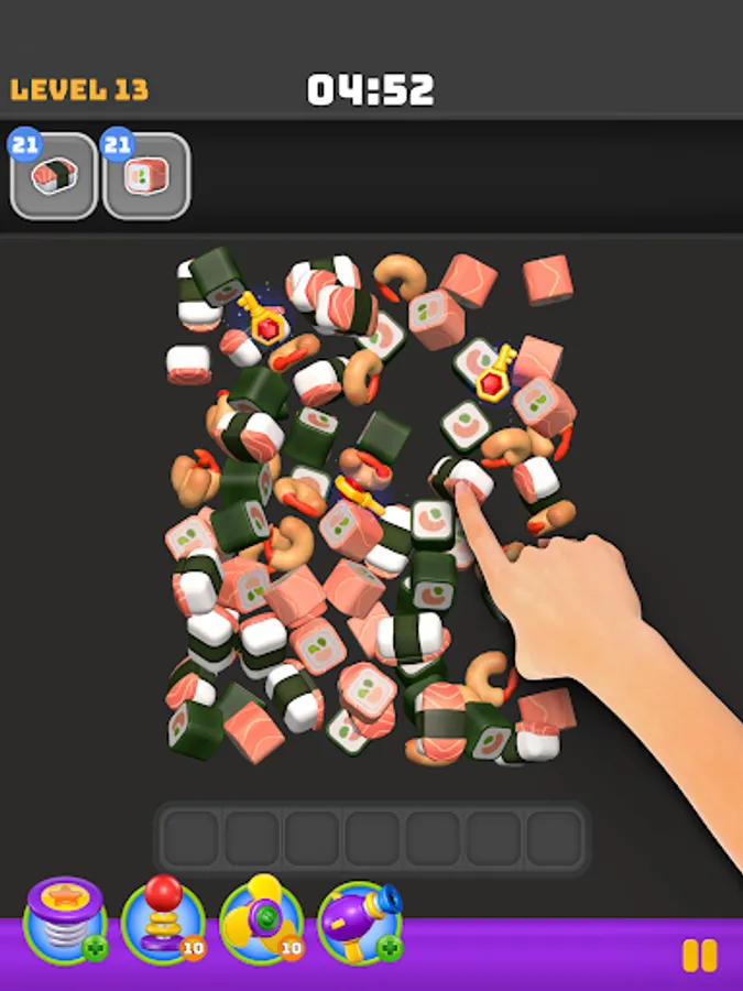 Keep sorting and matching objects until you clear all the tiles from the screen.