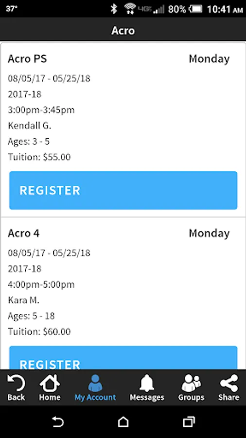 - Have a class in mind? Search by class, level, day, and time. You can register or even put yourself on a wait list.