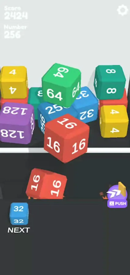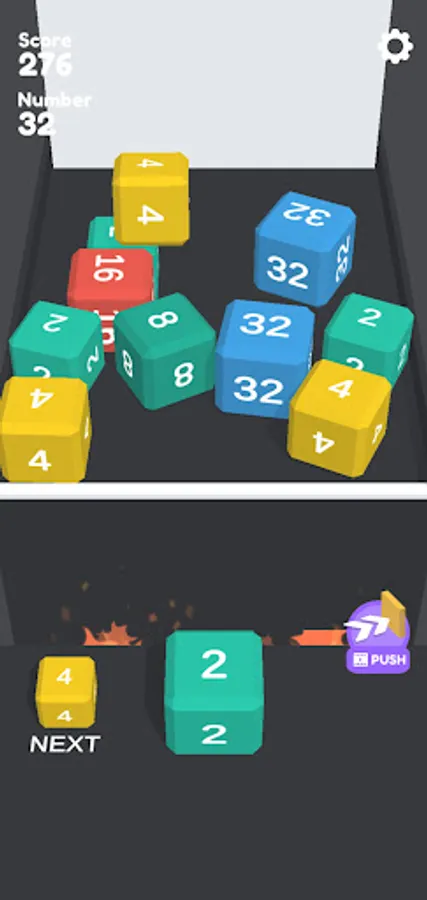 - 2number merge with 2number and enhanced with 4 when cube touch each other.