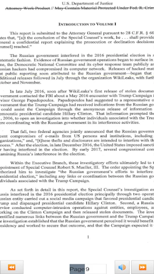 The Special Counsel investigation of 2017 to 2019, also referred to as the Mueller probe, Mueller investigation and Russia investigation was a United States counterintelligence investigation of the Russian government's efforts to interfere in the 2016 presidential election. aka The Witch Hunt