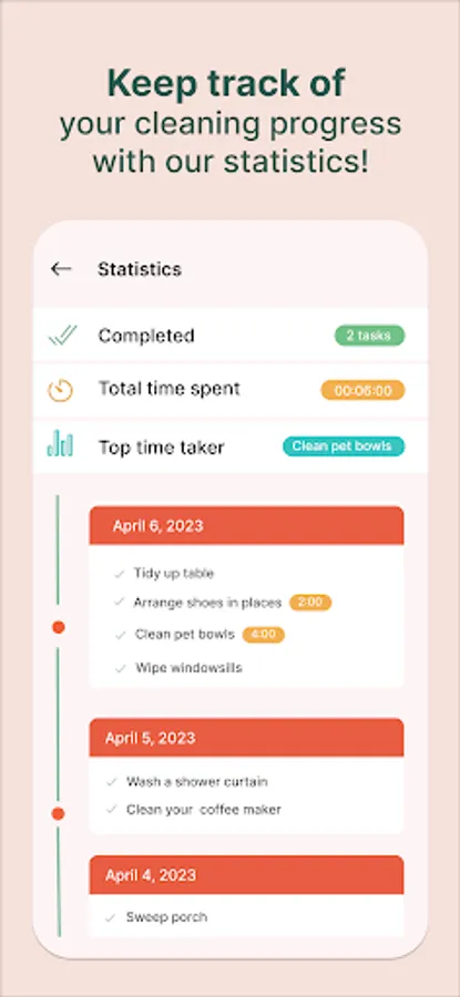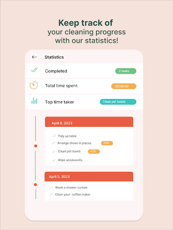 Simply tick off tasks from the chore lists per room. Monitor all finalized chores under the “Analytics” section.