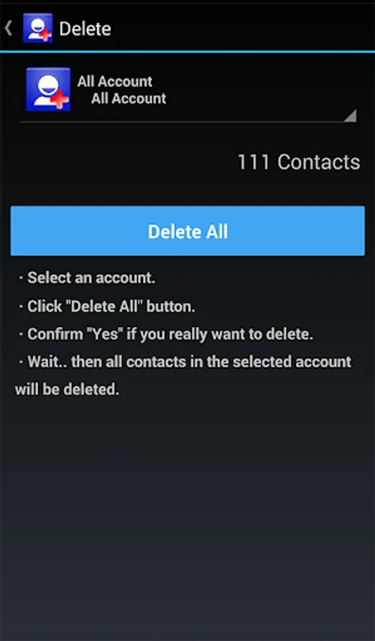 Additionally, you can delete all existing contacts, regardless of accounts, at once.
