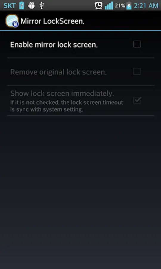 * Please launch the app once at the first time. Otherwise the lock screen will not be launch correctly *