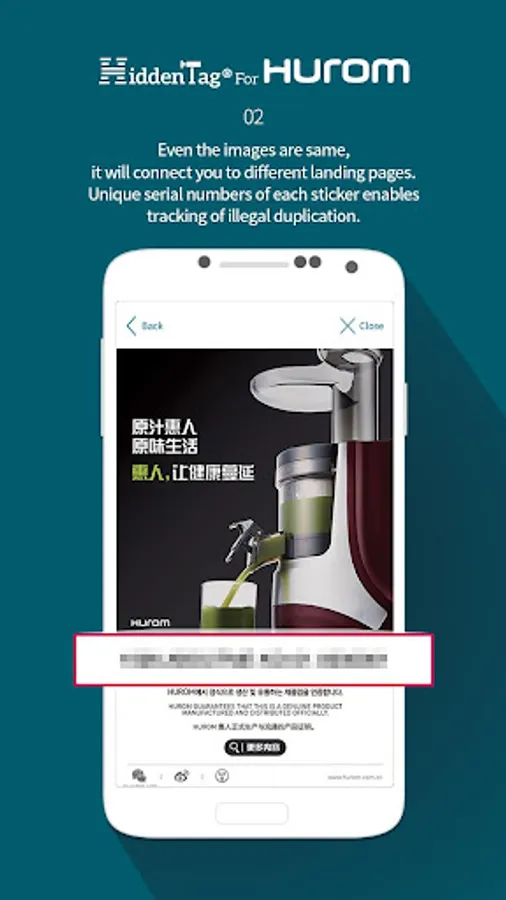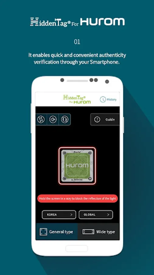 HiddenTag for HUROM is the mobile app used to verify the authenticity of HUROM products