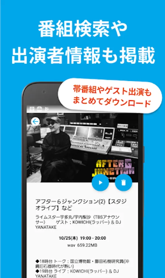 Radio Cutter (β) is an application that allows you to download and listen to past radio programs.
