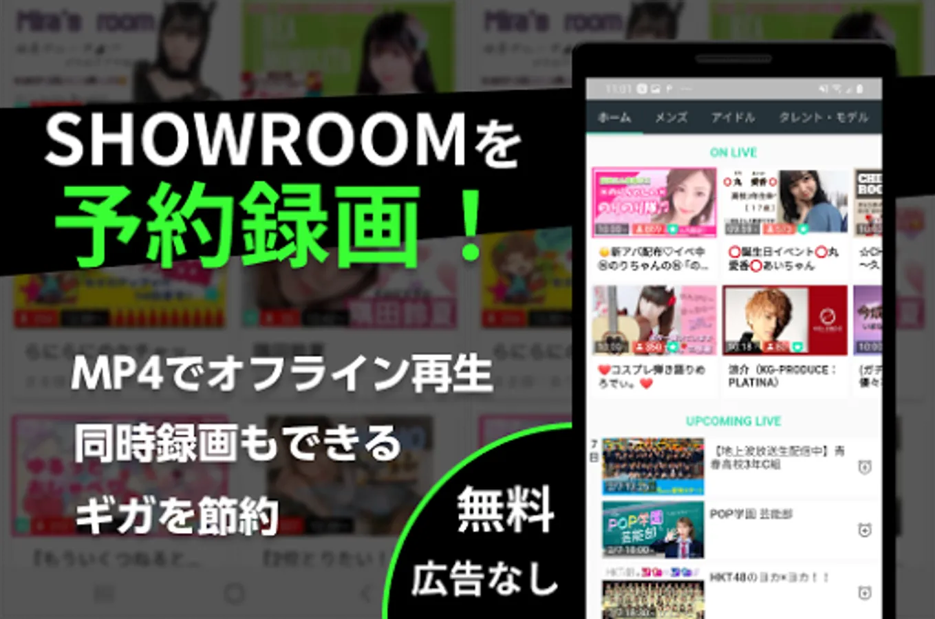 You can record the live distribution application "SHOWROOM" and save and play it as MP4.