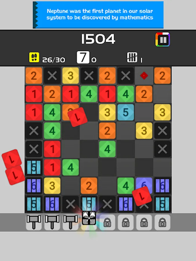 After every move, random tiles appear. As the play continues, the number of random tiles will increase, but more special tool slots will be unlocked. The shifting challenge forces the player to adjust their tactics progressively. How long can one last before the game board is filled up?