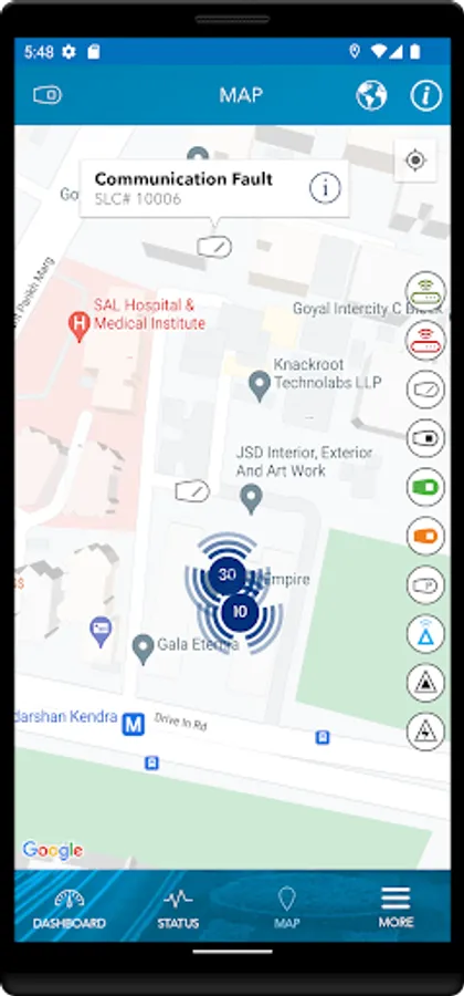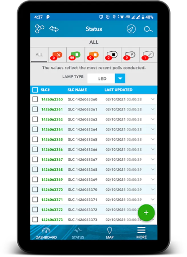 User-friendly mobile app providing access to frequently used function for managing the SLCs configured on the LightingGale cloud-based application. Users can easily send commands, view installations near them, get directions to a particular installation, troubleshoot faults right from their mobile devices while in the field.