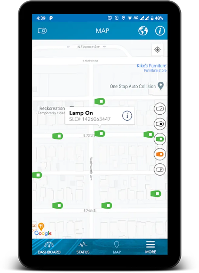 • Control streetlights (on, off, dim) from your phone