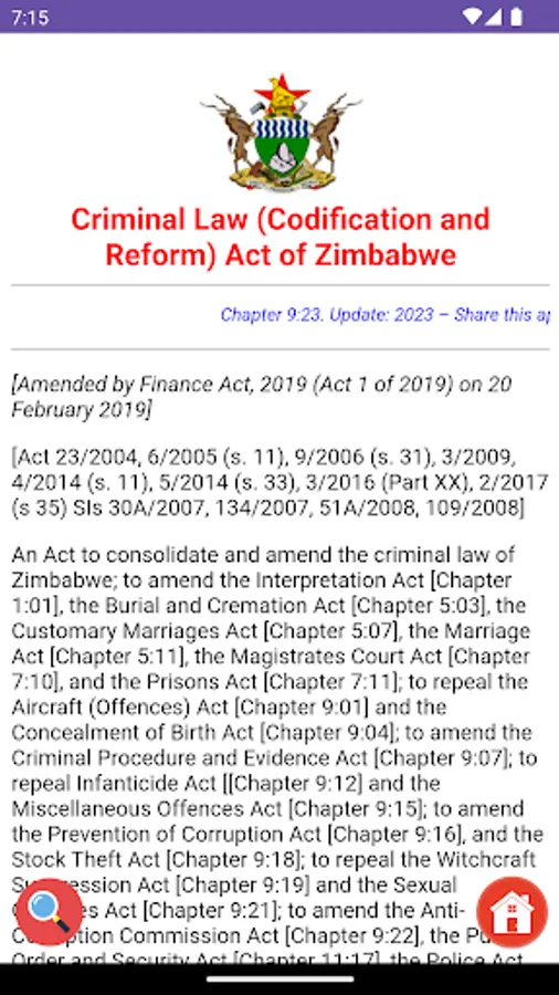 An Act to consolidate and amend the criminal law of Zimbabwe; to amend the Interpretation Act [Chapter 1:01], the Burial and Cremation Act [Chapter 5:03], the Customary Marriages Act [Chapter 5:07], the Marriage Act [Chapter 5:11], the Magistrates Court Act [Chapter 7:10], and the Prisons Act [Chapter