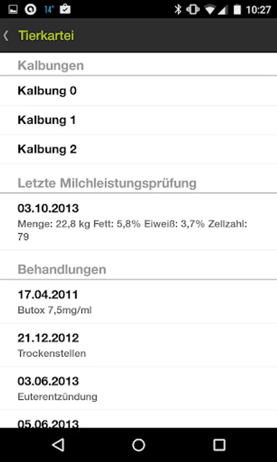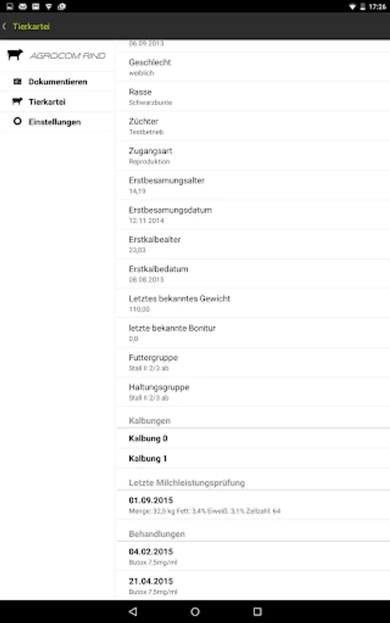 • Precise information on different used main identity characteristics to state reservations, breeding history, lactation cycles, monitorings and medical treatments.