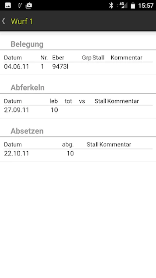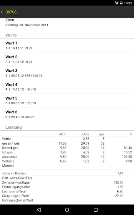 • Detailed list of all litters for each animal.