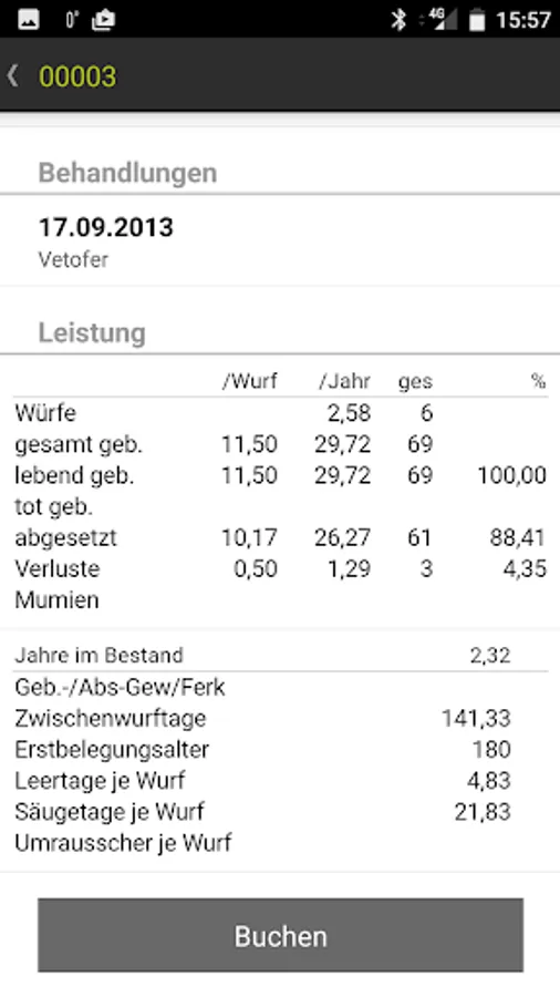 • Precise information on different used main identity characteristics to state reservations, breeding history, pregnancy examinations, throws and medical treatments.
