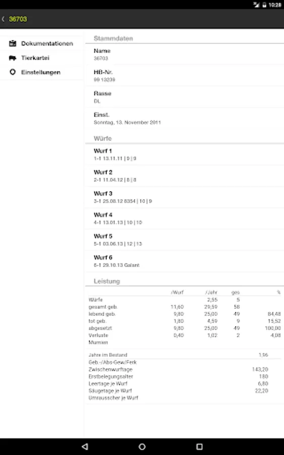 • Animal-specific evaluation of breeding performance per litter per year and as a general overview