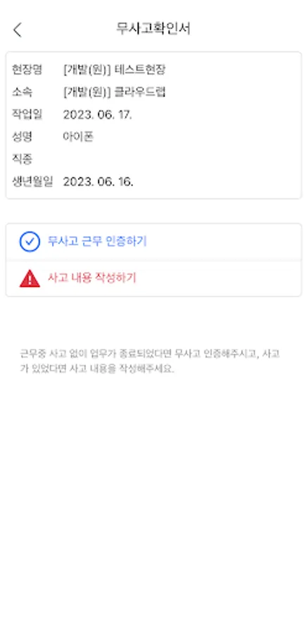 When leaving work, workers can send a confirmation that they have completed safe work without injury or accidents.