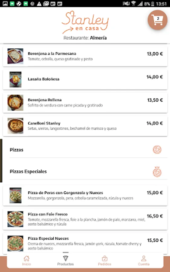 From this App you can access our extensive menu, where you can see the ingredients and photographs of the dishes.