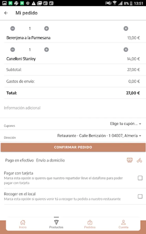In a simple and intuitive way and with one click, you send us your order and different choices. You just have to register, and access your favorite menu. You can also get different promotions and discounts that will make this new application become an essential on your mobile!