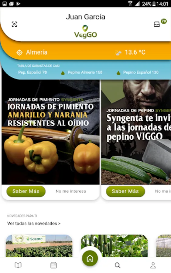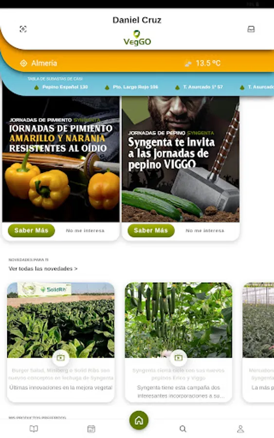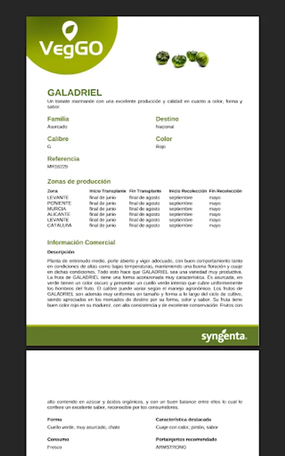 Syngenta Iberia Seeds' VegGo is the ultimate app for growers. Through it you will be able to be in continuous contact with technicians and commercials through their live chat, you will be able to keep up to date with visits to farms and events related to products that you grow or new opportunities, you will know exactly the weather in the area of your crops, you will know the price of live auctions and you will have access to large amounts of information in the form of news, product sheets, recipes and much more.