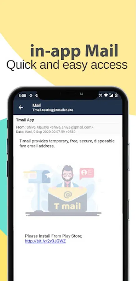 tMail creates a temporary email address (Temp mail). You can use it to sign up for any websites, and you can read incoming emails.