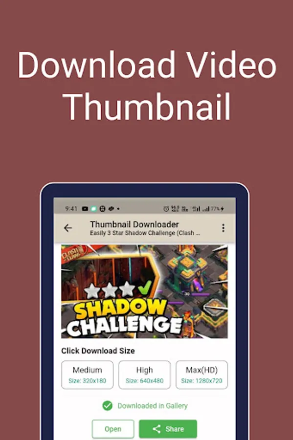 Easily download any video thumbnail on your phone. And share it with friends.