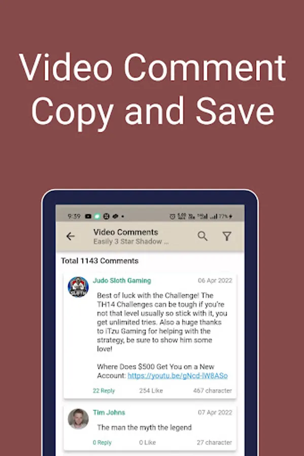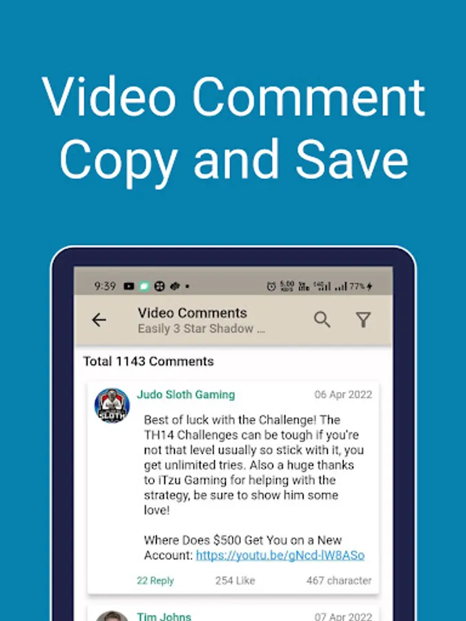 You can explore comments of any video, Also you can copy/save any comment, Search comments by keyword and also apply a filter.