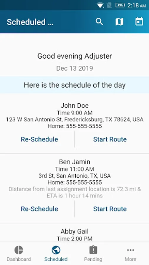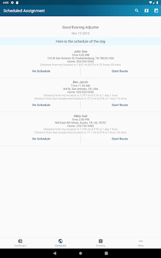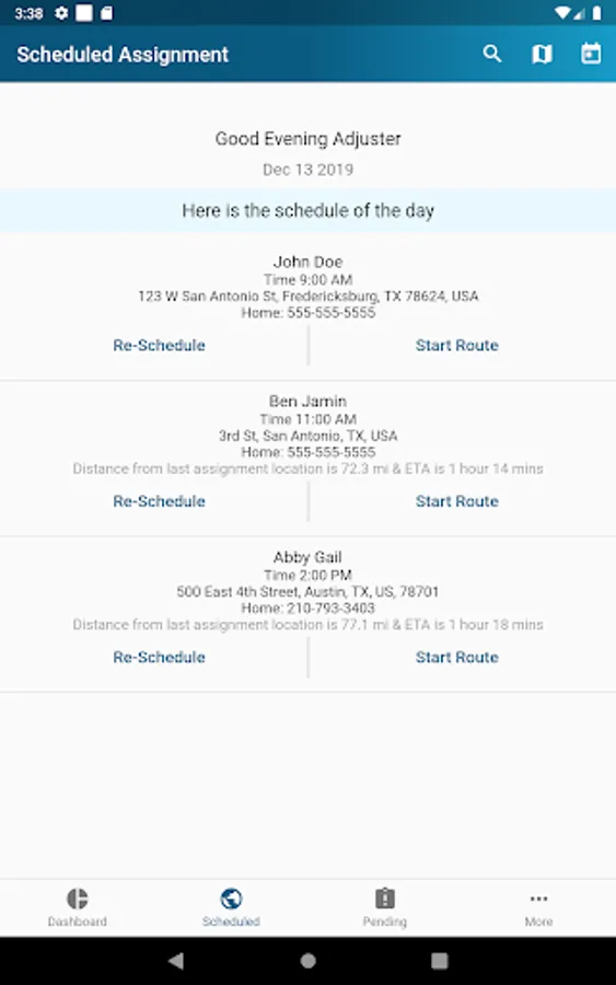 • Real-time arrivals. Share real time inspection arrival times with members taken directly from GPS.