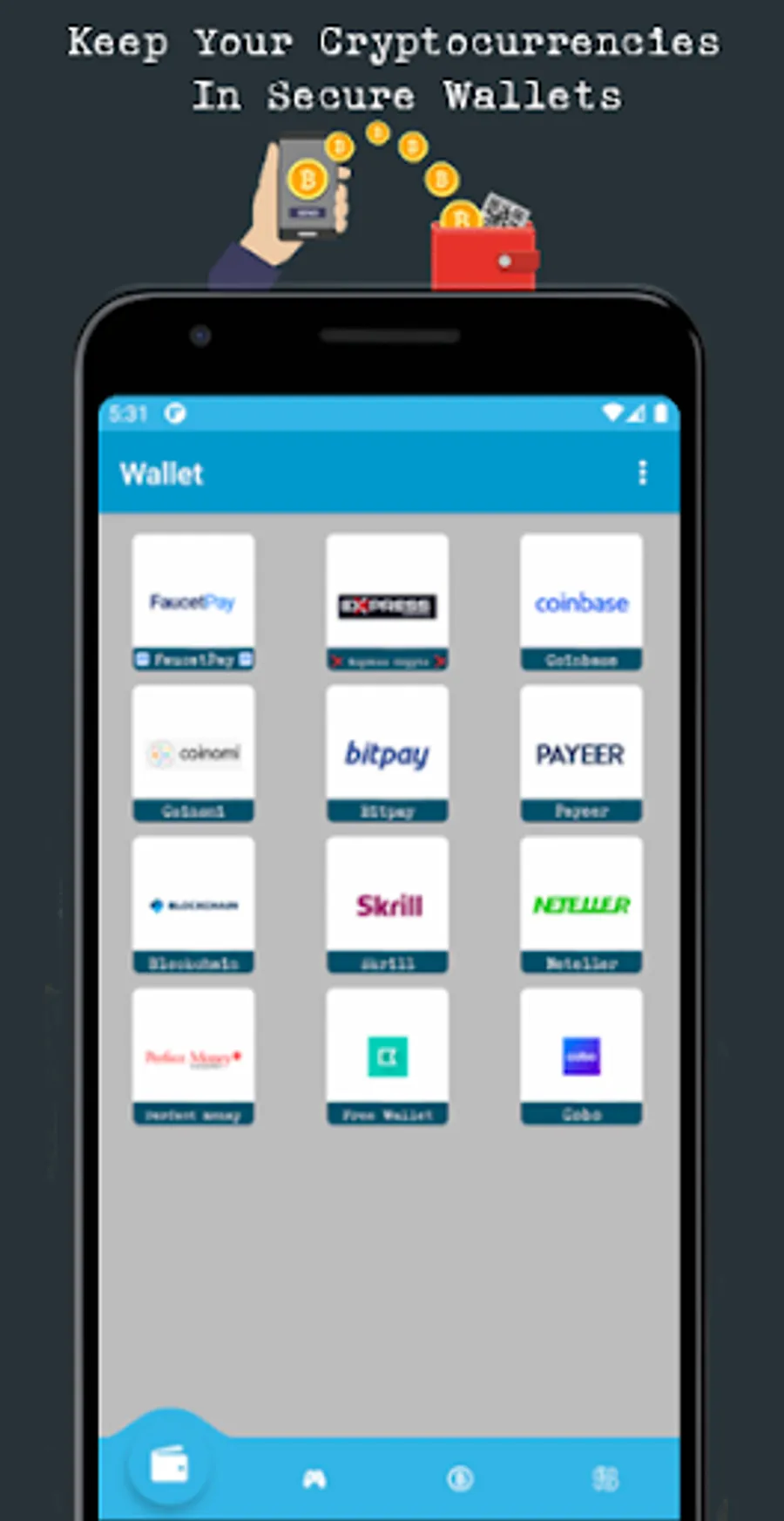 FaucetPay, Express Crypto, Coinbase, Coinomi, BitPay, Payeer, Blockchain, Skrill, Neteller, Perfect Money, Free Wallet, Cobo.